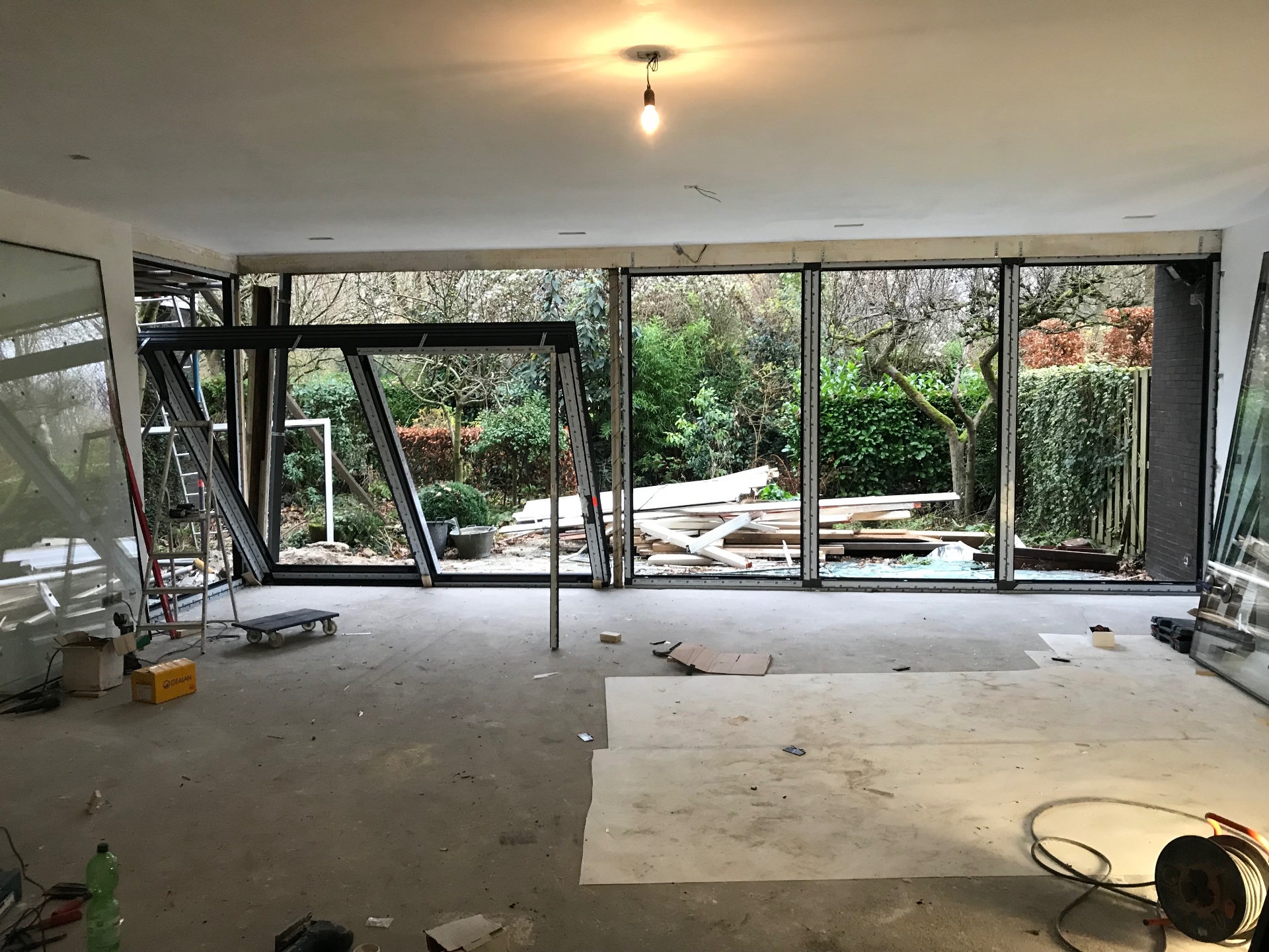 Window joinery prepared for installation.